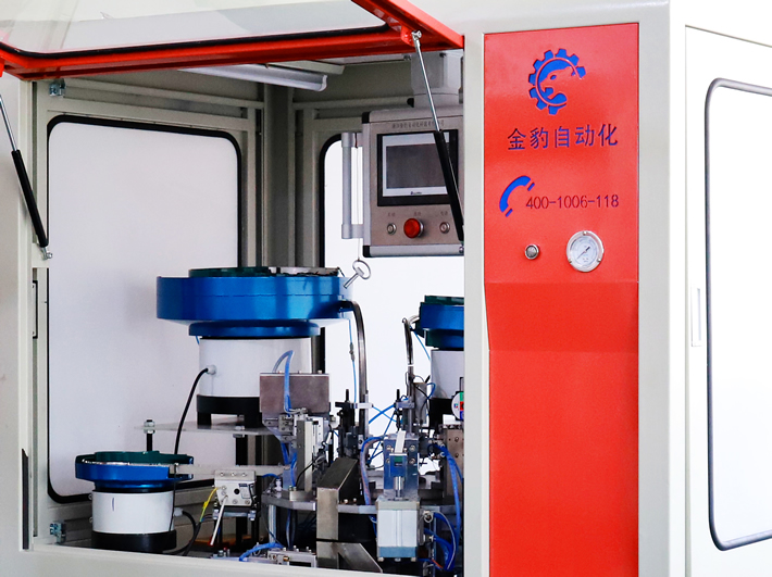 浙江金豹自動化有限公司坐落于享有“電器之都”之稱的樂清市,專業從事自動化生產設備的研發、生產、銷售??砂从脩粢蠖ㄖ品菢俗詣踊O備,為各類開關元件、插座元件廠家提供自動化生產解決方案和技術支持。 公司擁有先進的生產設備,經驗豐富的工程設計研發團隊,專業的生產隊伍,嚴格的產品檢驗制度,確保產品的穩定性,可靠性和長壽命。經過多年的研發并吸取國際機械技術之精華,采用先進的生產工藝,并達到國際同行先進水平。 本公司產品廣泛應用于機械、電子、汽車電氣、接插件、標準件、軸承、醫療品械、五金等行業。特別本公司設計制造的 輕觸開關裝配機、DC插座自動組裝機、按鈕開關裝配機、自動銀點鉚接機及船型開關自動組裝機,贏得了廣大客戶的高度評價。  …